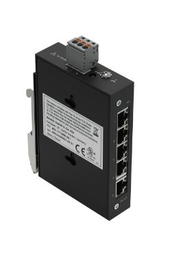 This unmanaged industrial ETHERNET switch (852-111/000-001) has 5 ETHERNET ports for easily setting up small- to medium-sized networks. Its slim design paired with a DIN-rail adapter simplifies installation in the control cabinet and provides high vibration and shock resistance.