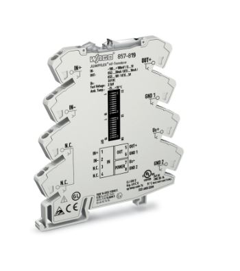 WAGO's voltage signal conditioner converts millivolt signals (at the input) into a standard analog signal at the output.