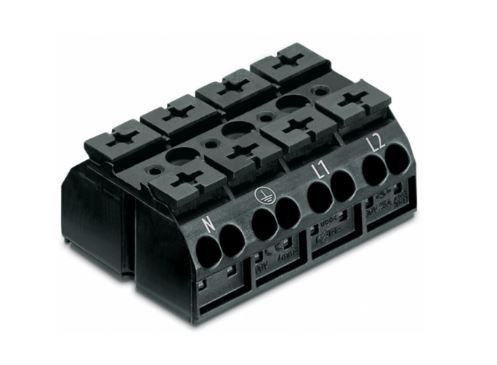 Our chassis-mount terminal strip (item number 862-2504) is designed for seamless electrical installations. Ensure that the strip lengths are between 10 mm and 11 mm when connecting conductors to this chassis-mount terminal strip. Featuring conductor terminals along with Push-in CAGE CLAMP®, this product outperforms the competition. Our Push-in CAGE CLAMP® is a universal, maintenance-free connection solution for all conductor types, featuring a winning design: It allows direct insertion of both solid and fine-stranded conductors with ferrules without needing tools. No preparation is required; for example, crimping the conductor's ferrule is not necessary. Depending on the type of conductor, this chassis-mount terminal strip is ideal for conductor cross sections ranging from 0.5 mm² to 4 mm². Up to four potentials / four poles can be connected to this terminal strip using sixteen clamping points. The black housing is made of polyamide (PA66) for insulation.