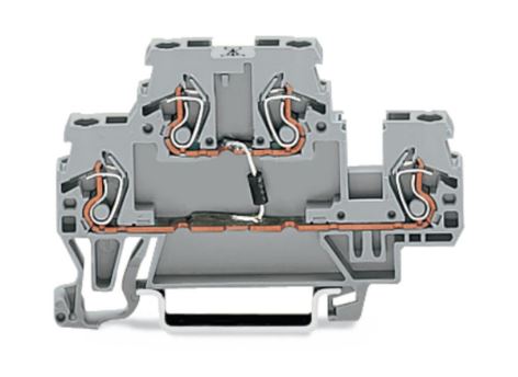Effortless electrical installations are guaranteed with this double-deck terminal block (item number 870-540/281-410). The double-deck terminal block also serves as component terminal block with diode. Ensure that the strip lengths are between 6 mm and 7 mm when connecting conductors to this double-deck terminal block. Featuring conductor terminals along with CAGE CLAMP®, this connector is highly versatile. Our renowned universal connection known as CAGE CLAMP® is the industry standard when it comes to connection technology and electrical interconnections. This double-deck terminal block is suitable for conductor cross sections ranging from 0.08 mm² to 2.5 mm². It has two levels. You can connect a single potential using the four clamping points. The grey housing is made of polyamide (PA66) for insulation. These function terminal blocks are mounted using DIN-35 rails..