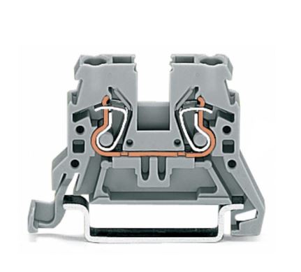 Connect conductors quickly and easily with this through terminal block (item number 870-901). Whether for industrial or building applications, you can use our through terminal blocks to connect electrical conductors quickly and safely. We offer variants for both classic through-wiring and potential distribution. This mini rail-mount terminal block has a rated voltage of 500 V and can handle currents up to 24 A. Conductors should only be connected to this through terminal block if their strip length is between 6 mm and 7 mm. This product features conductor terminals and utilizes CAGE CLAMP®. Our highly-rated and maintenance-free CAGE CLAMP® connection makes it easy to connect all conductor types without having to prepare the conductor. For example, you don't need to crimp ferrules. Depending on the conductor type, this through terminal block is suitable for conductor cross sections ranging from 0.08 mm² to 2.5 mm². It has one level. You can connect a single potential using the two clamping points. The gray housing is made of polyamide (PA66) for insulation. This mini rail-mount terminal block is operated with an operating tool. These mini rail-mount terminal blocks are mounted using DIN-35 rails.. The front-entry wiring means you can connect copper conductors.