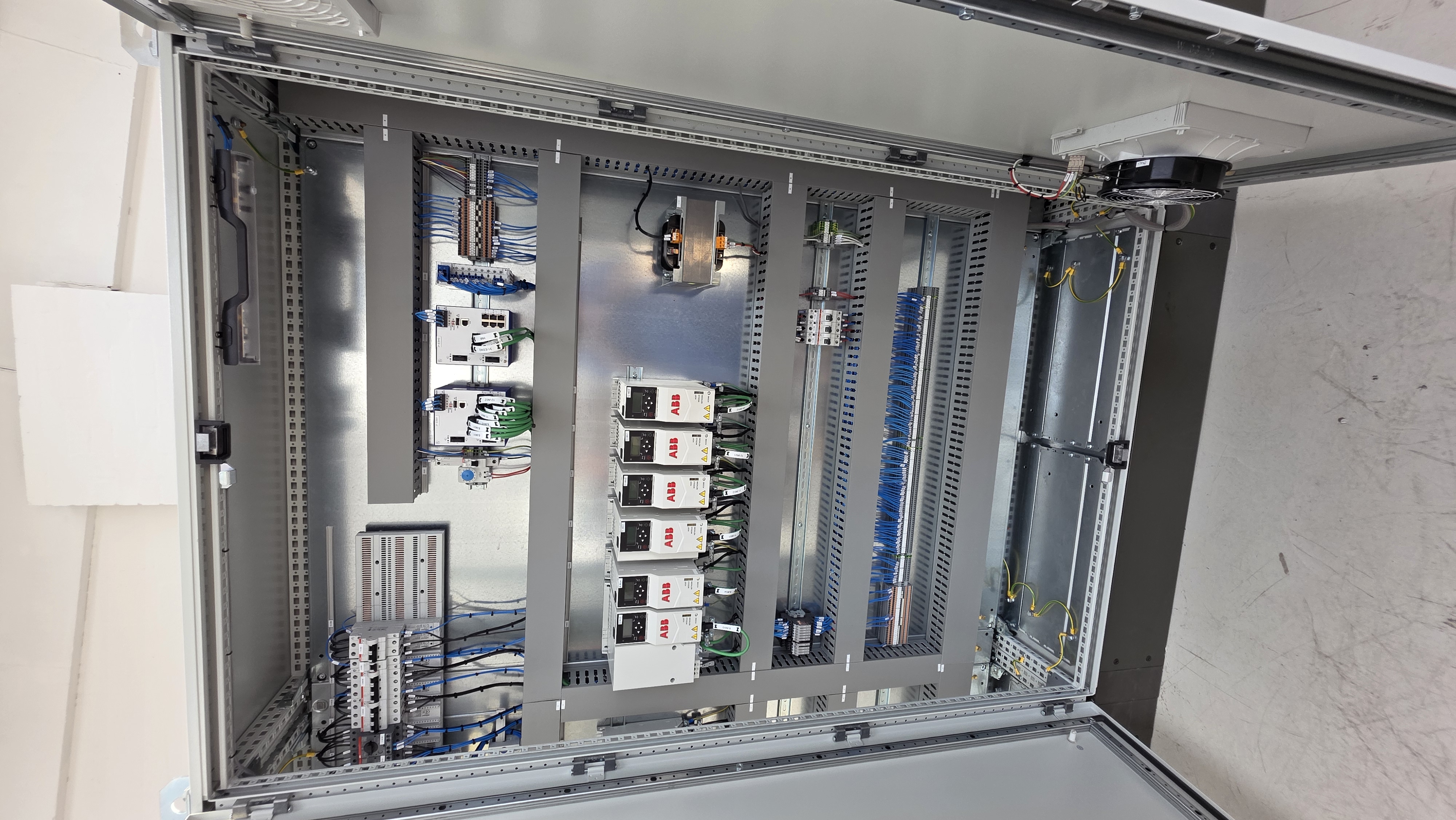 The project was for a new conveyor and paint booth system for a UK based industrial gas canister company.The layout for the panel consists of: